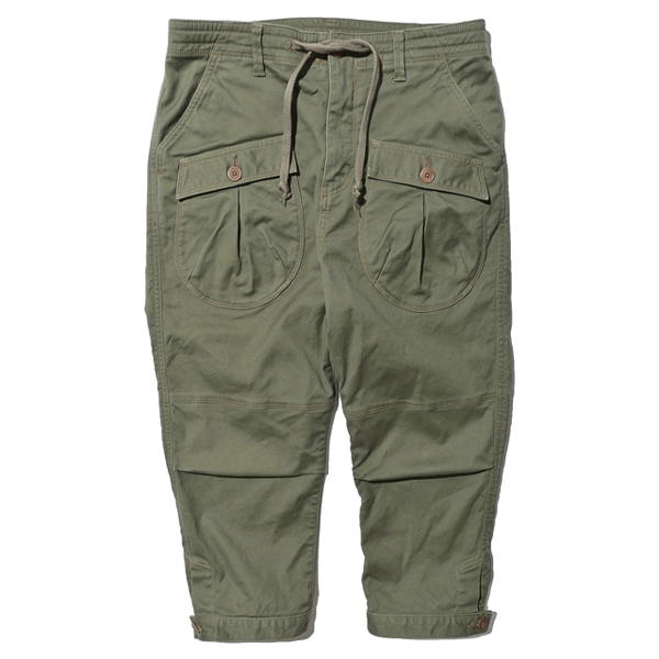 サルエルパンツと呼ばれる深めの股下と裾は窄まった特徴のパンツをジョドファースタイルを織り交ぜたアクティブなフィールドパンツとして仕上がったアイテム。