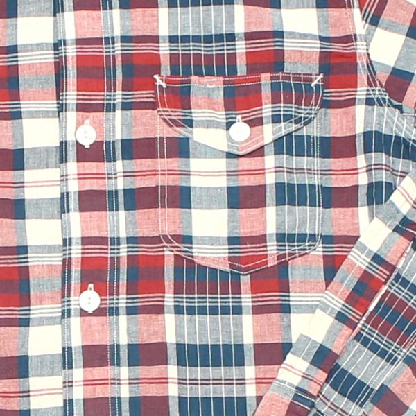 ホワイトシャンブレー(White Chambray)は5.5オンスミミ付きで縦横共に20番。レッドマドラス(Red Madras)はインド産。3オンス程度でこちらはやや薄めです。
