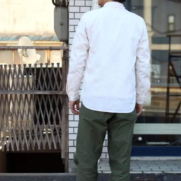 チンストラップは無しでワークシャツなんですが…ドレスシャツ的な風合いです。