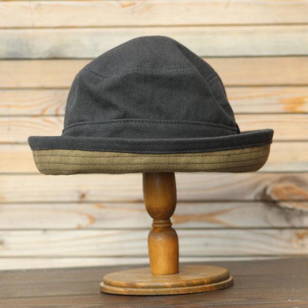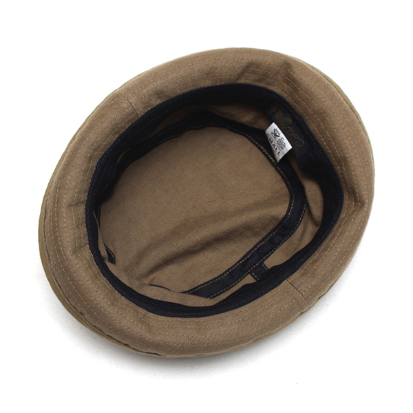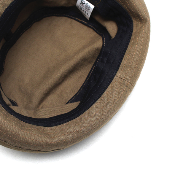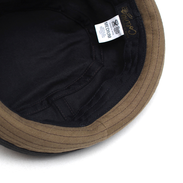 バイザー裏にはカーキ色のヘリンボーン生地が使われておりアクセントにもなっております。