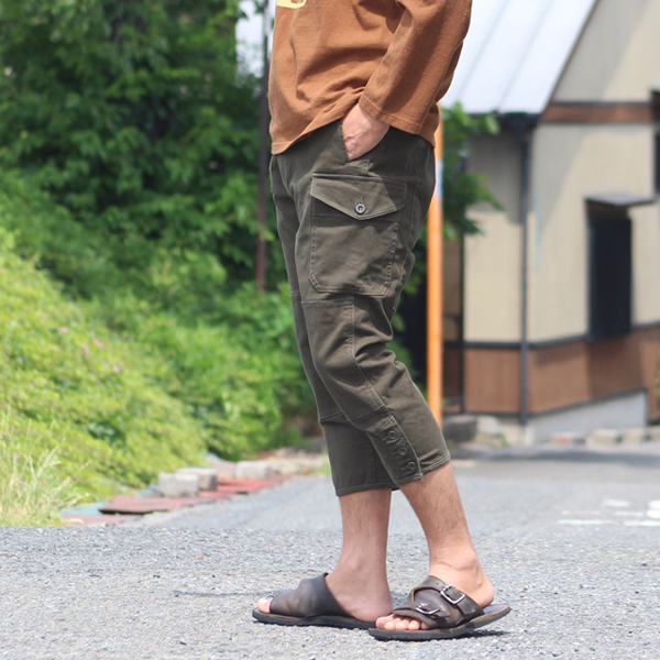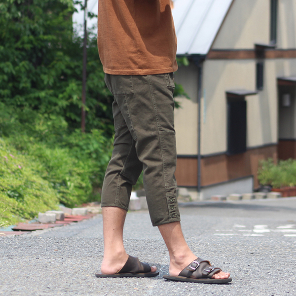 レングスは7~8分程のクロップド丈のボタン留めパンツです。