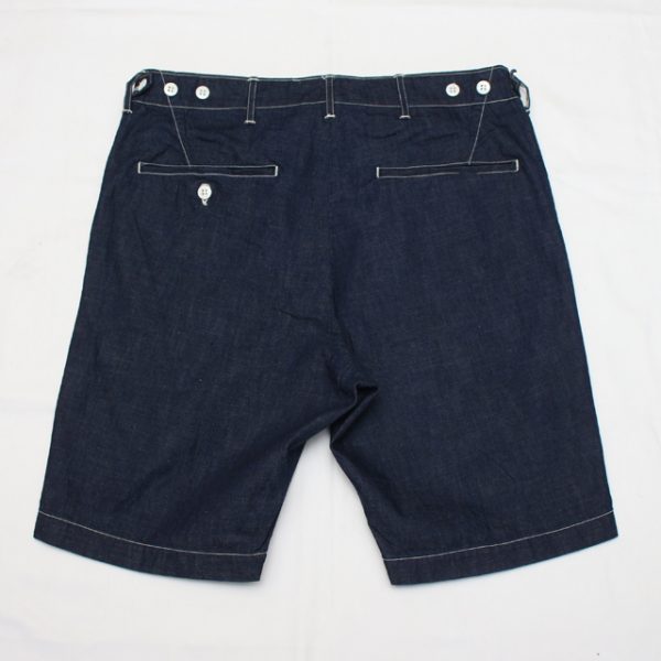ウエストはベルトループも使えますが、クラシックな風合いのボタン+タブの調節でも可能です。