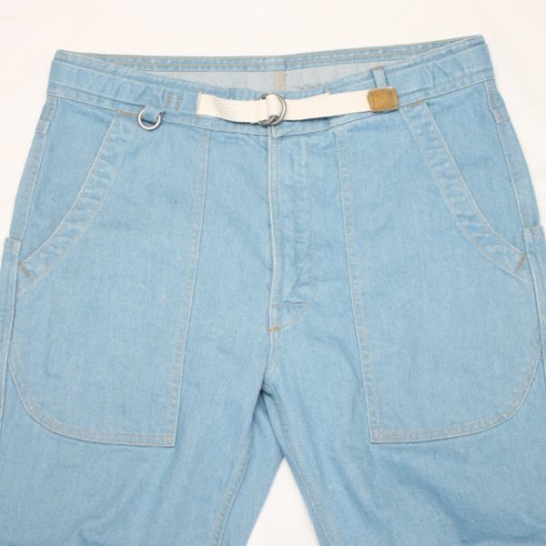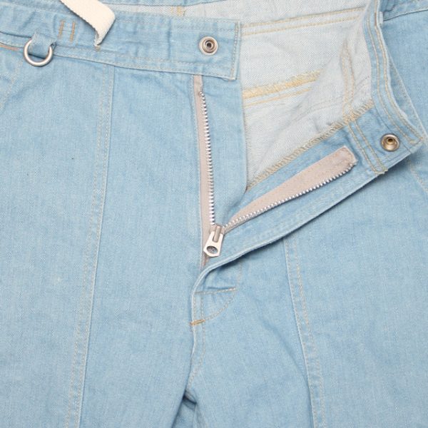 ウエストはアジャストベルト内臓で、バックルはダブルリングにトップボタンはオリジナルスナップボタン、フロントはWALDES製ZIPです。