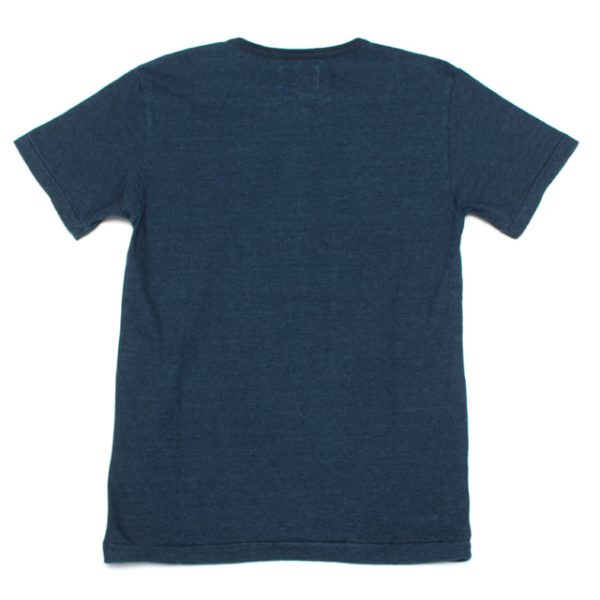生地はコットン100%のインディゴロープ染色(糸の芯までは染めていない染色方法です。)着る洗う事でジーンズのように色が抜け独特な風合いに変化していくTシャツです。