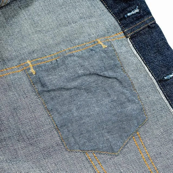 生地は定番ジーンズでもお馴染みの13.75Ozのオリジナルセルビッチデニムが使われています。