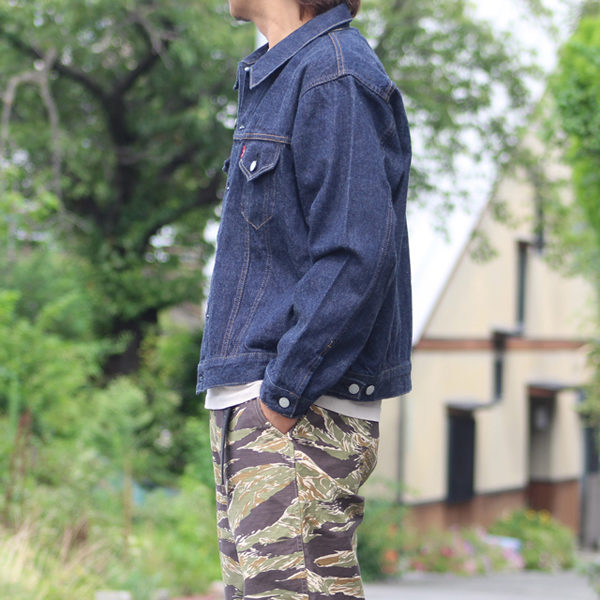 シルエットはビンテージ557XXよりウエストの絞りを抑えて着丈も長くした、日常に使いやすい形です。