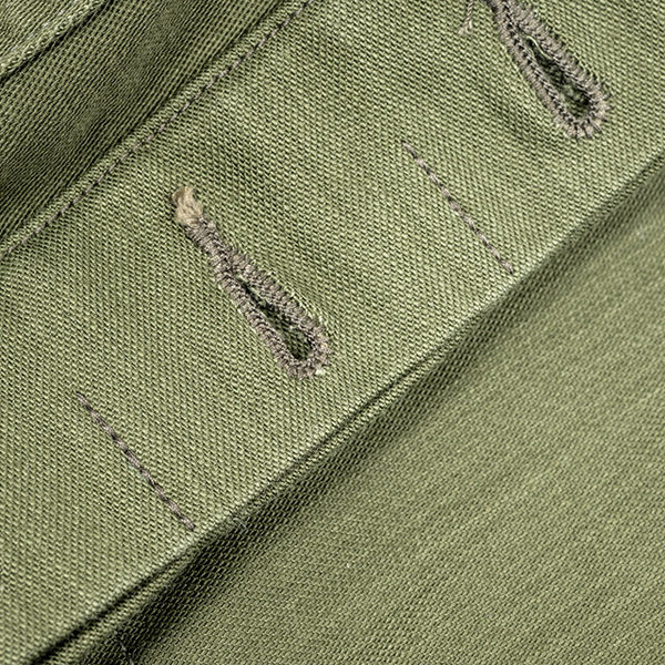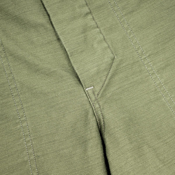 ボタンは随所に尿素ボタン、縫製糸はスパン糸を使い随所に巻き縫い・ダブルステッチ・カン止めなど強度にも優れた仕様で仕上がっています。