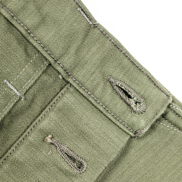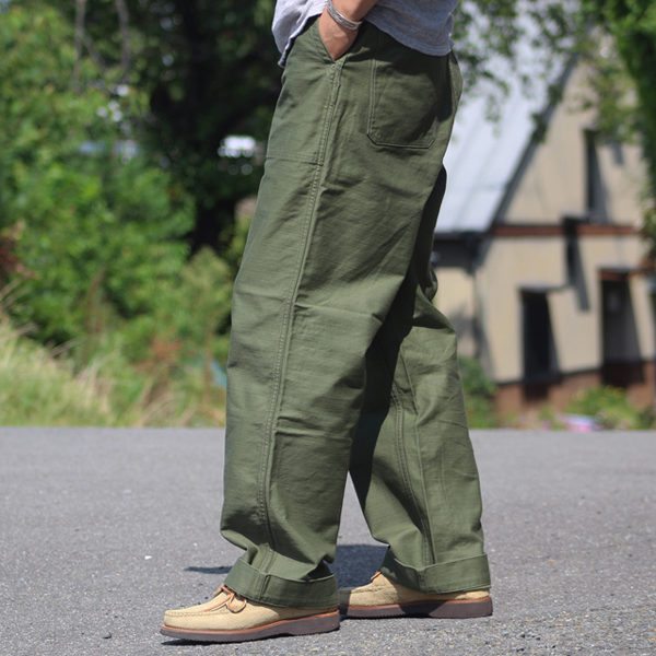 生地は10オンス・コットン100%・スレン染バックサテンを使っており、穿き込む洗うことで色落ちをお楽しみ頂けます。