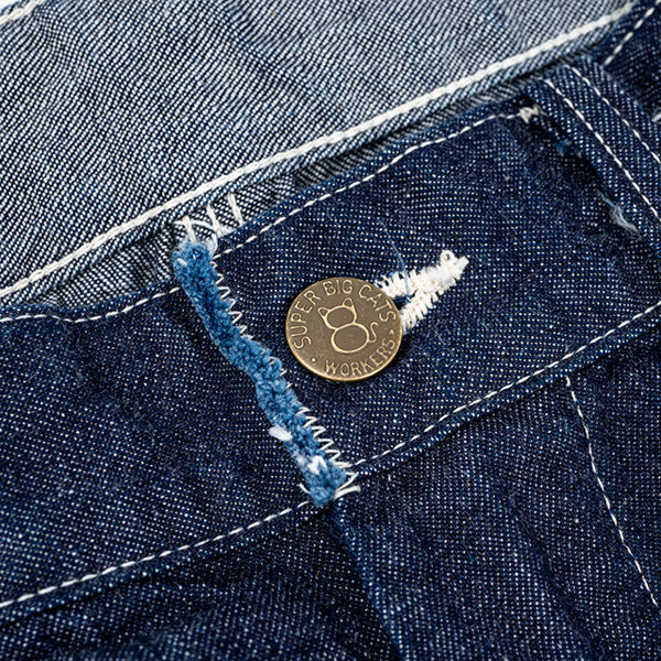 オリジナルネーム、オリジナルボタン、オリジナルラベル、グリッパーファスナー、ハンマーループ、ツールポケット、トリプルステッチでの縫製などが特徴的な仕様となっています。