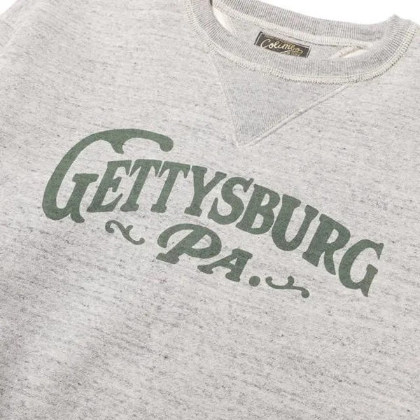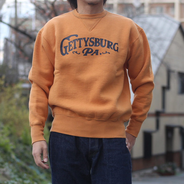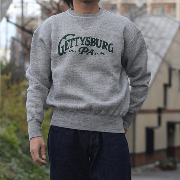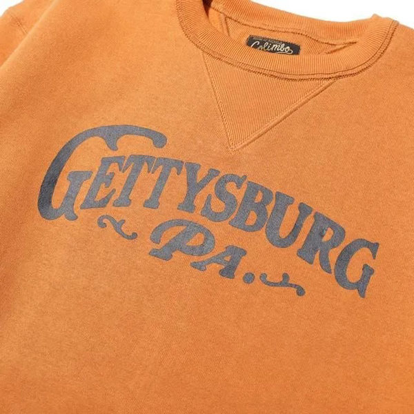 南北戦争の舞台としても知られるペンシルべニア州の街をモチーフにデザイン。歴史ある地名を掲げたカレッジ風プリントがヴィンテージらしい風合いを演出します。