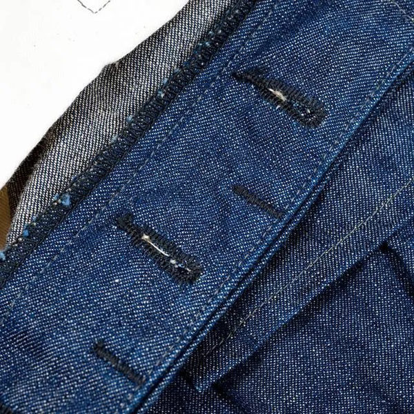 生地は10オンス・コットン100%・ヨコ糸ブラウン染め×タテインディゴデニムが使用されており、経年変化もお楽しみ頂けます。