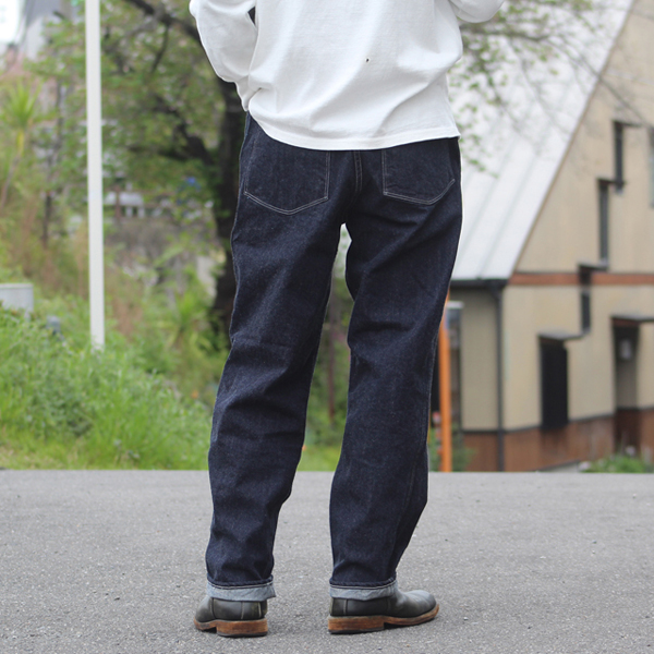 生地は12オンス程のオリジナルセルヴィッチデニム使用をされ、ザラ感もあり独特な風合いを放っており、インディゴデニム特有の色落ちもお楽しみ頂けます。