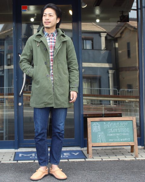 生地はチノクロス、一重仕様のスプリングコート。
