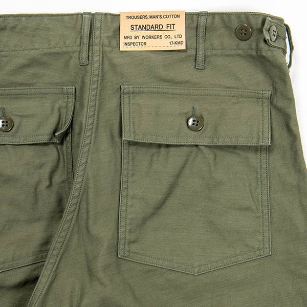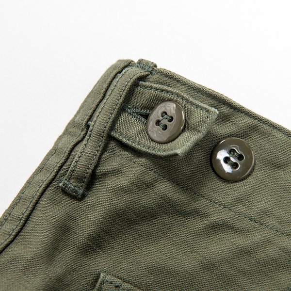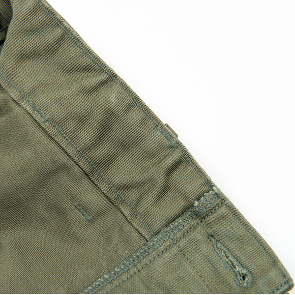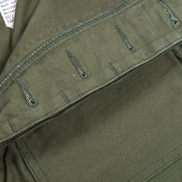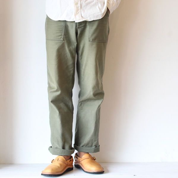 生地はバックサテンで10オンス程の厚みで、染める前にマーセライズ加工されており穿き込むことで色落ちをお楽しみ頂けます。