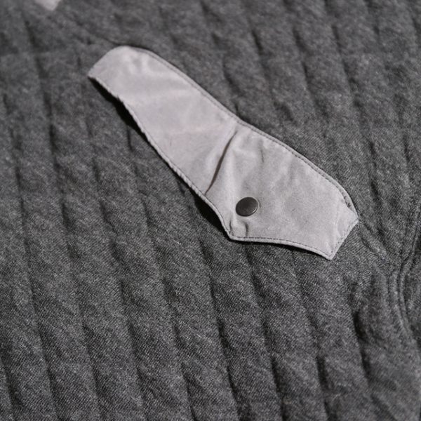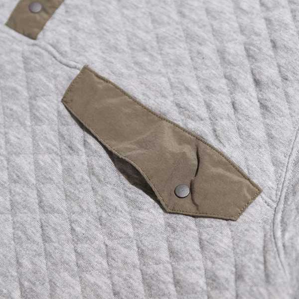 その他、布帛の前立て、プラスチックスナップボタン、首周り、袖口、裾にはパイピングなど丁寧に仕上がっています。