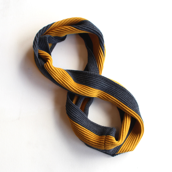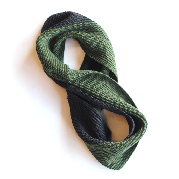 こちらも装着方法は先ず本品を8の字状に捻ってから2つ折りにしてかぶったり、