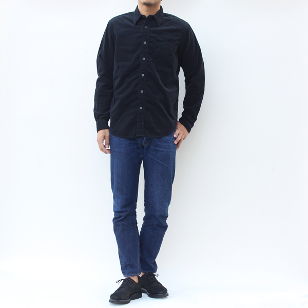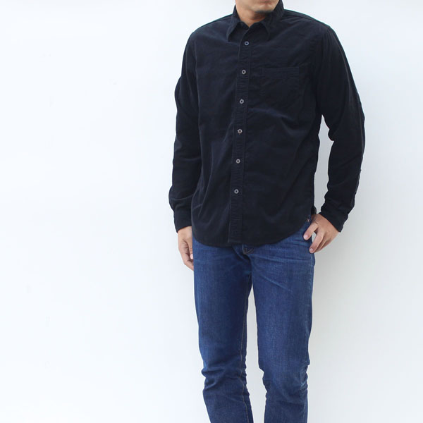 上質で渋いブラック細ウネコールを使用したレギュラーシャツ。