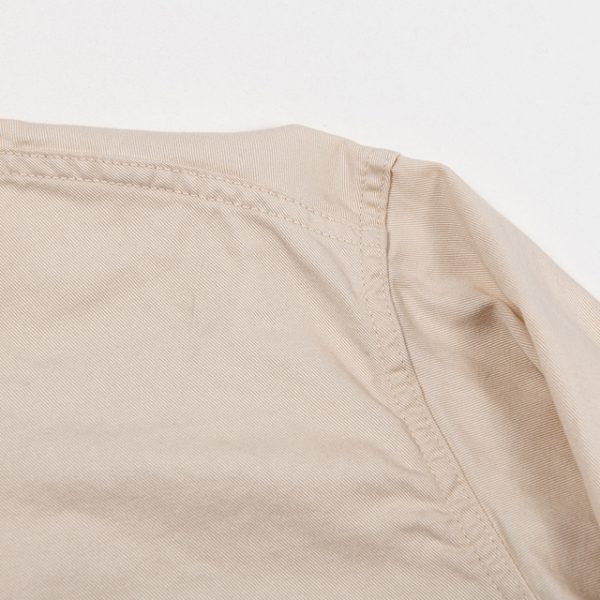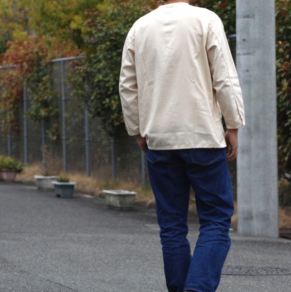 素材は5ozコットンツイル地がベースとなり中厚ぐらいのバランスで春・秋はアウター、冬はインナーとして長いシーズンお使い頂けます。